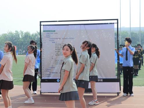 神蛇舞动,气势磅礴,唤醒满怀豪迈豪情。祥光焕彩,灵蛇献瑞。方阵成员们“健康中国”“活力沧交”独特的表演形式,展现米乐官网学子的灵动与朝气。