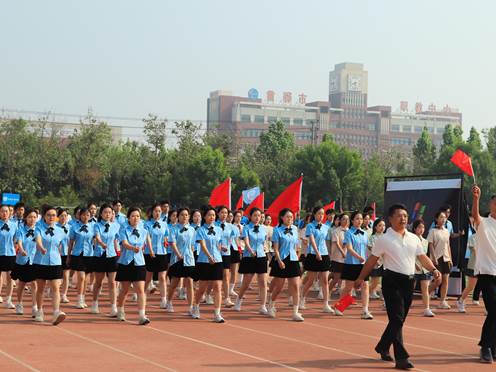 5月16日上午8时,米乐官网操场迎来第十四届田径运动会开幕式。绿茵场彩旗飞扬,洋溢青春活力。渤海新区黄骅市人民政府副市长张桂云,渤海新区黄骅市教育局局长何寿彪,米乐官网执行董事长薛君南,校长章梓茂,党委书记庞更新,副校长兼财务总监余裕玲,副校长赵金楼,副校长王忆宁,党委副书记、副校长邵晓康以及各二级单位负责人出席此次开幕式,此次开幕式由党委副书记吴立军主持。