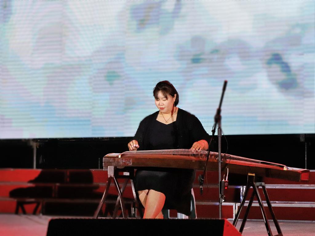 艺术学院教师陈晨带来古筝独奏《象王行》。旋律大气磅礴,似象王巡疆,气吞山河,引人踏入万里征程。其恢弘气度,恰是毕业生启程当有的精神底色。陈老师寄语毕业生:愿诸位如象王行稳致远,以所学铺就强国之路,前程似锦!