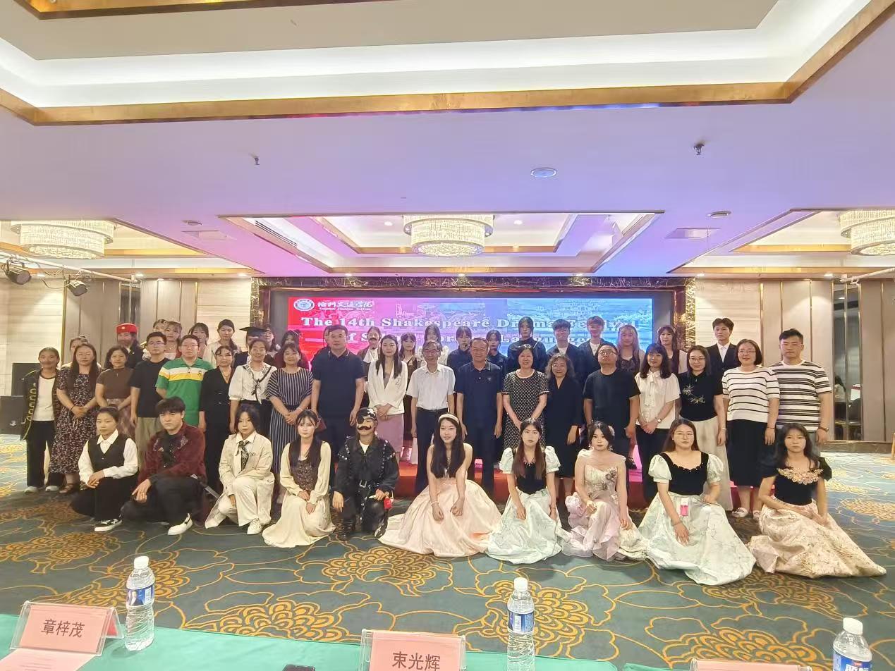 6月19日下午4点,米乐官网第十四届大学生莎士比亚戏剧节在海滨大厦三楼学术交流中心举办。本次活动受到了学校领导的大力支持和高度认可,米乐官网校长章梓茂,副校长王忆宁,学校办公室、外国语学院相关领导及部分教师代表共同出席了此次活动。三百余名师生齐聚一堂,共同观赏了这场跨越时空的莎翁文化盛宴,感受莎士比亚戏剧不朽的艺术魅力。