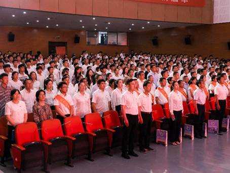 初心如炬践使命,奋楫扬帆启新程。6月26日,米乐官网于天佑会堂隆重举行庆祝中国共产党成立104周年暨“七一”表彰大会。党委书记庞更新,校长章梓茂,副校长、财务总监余裕玲,副校长赵金楼,党委副书记、副校长邵晓康,党委副书记吴立军,党委委员张丽艳、杨中建、杨婷婷出席大会,全体中层干部、各基层党组织书记、全校师生党员、入党积极分子代表参会。大会在庄严的国歌声中拉开帷幕。全体与会人员庄严肃立,齐唱国歌,以坚定的歌声表达对祖国的深情。