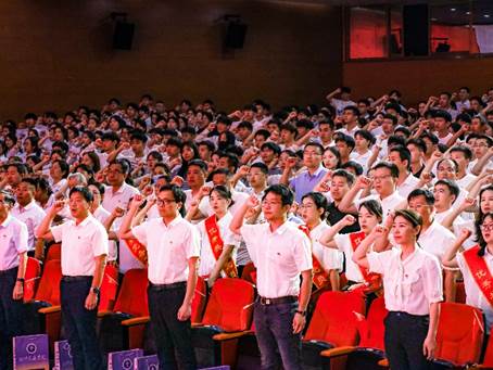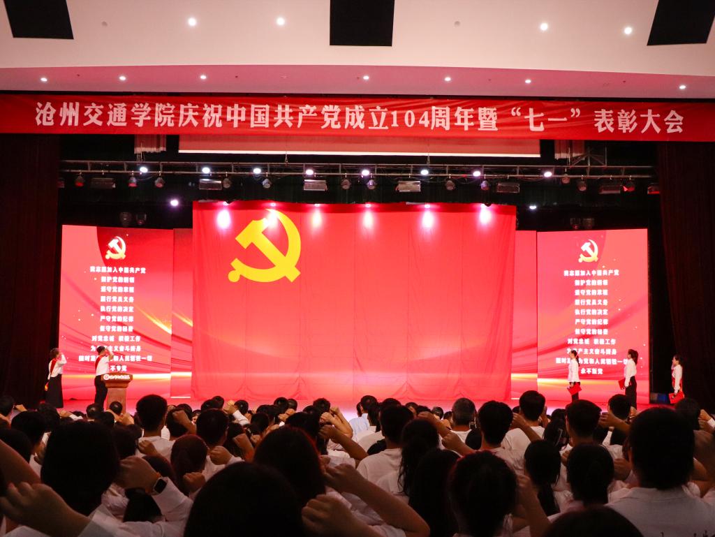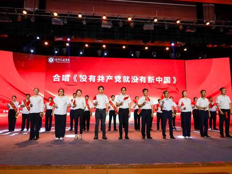 全场650名共产党员和入党积极分子共同唱响《没有共产党就没有新中国》,全体校领导、党委委员及获奖集体和个人上台领唱。激昂的歌声表达着对党的无限热爱与忠诚,抒发奋进新征程、建功新时代的豪迈情怀。