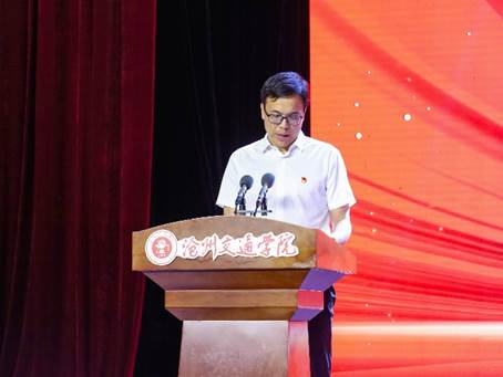 学校党委书记庞更新讲话。他首先代表学校党委向全校各级党组织和全体党员致以节日问候,向受表彰的先进集体和个人表示热烈祝贺。庞书记回顾了中国共产党104年来的光辉历程,特别是党的十八大以来以习近平同志为核心的党中央团结带领全国人民取得的伟大成就。他指出,过去一年学校各级党组织和全体党员围绕“抓规范、提质量,防风险、保稳定,强引领、促发展”工作主线,扎实推进“六项工程”,在政治建设、组织建设、思政育人、党业融合等方面取得显著成效,学校综合实力和社会声誉持续提升。展望未来,他提出三点希望:一是坚定理想信念,坚守教育初心;二是提高政治站位,优化发展环境;三是遵守规矩、尊重规则、遵循规律,提升学校治理效能。庞书记号召全校师生以受表彰的先进典型为榜样,聚焦高水平应用型大学建设目标,勇毅前行,共同谱写新时代沧交人的壮丽篇章。