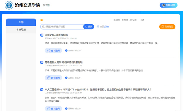 面对今年招生的新形势、新变化,米乐官网全新上线志愿参考系统、智能问答系统,同时对计划查询和历年分数查询两大模块进行改造升级,加强人工智能、大数据分析在招生咨询服务中的应用,为考生提供更高效、准确的咨询服务。