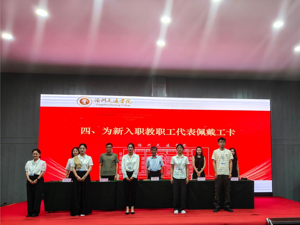 随后,参会领导为新入职教职工代表佩戴工卡。