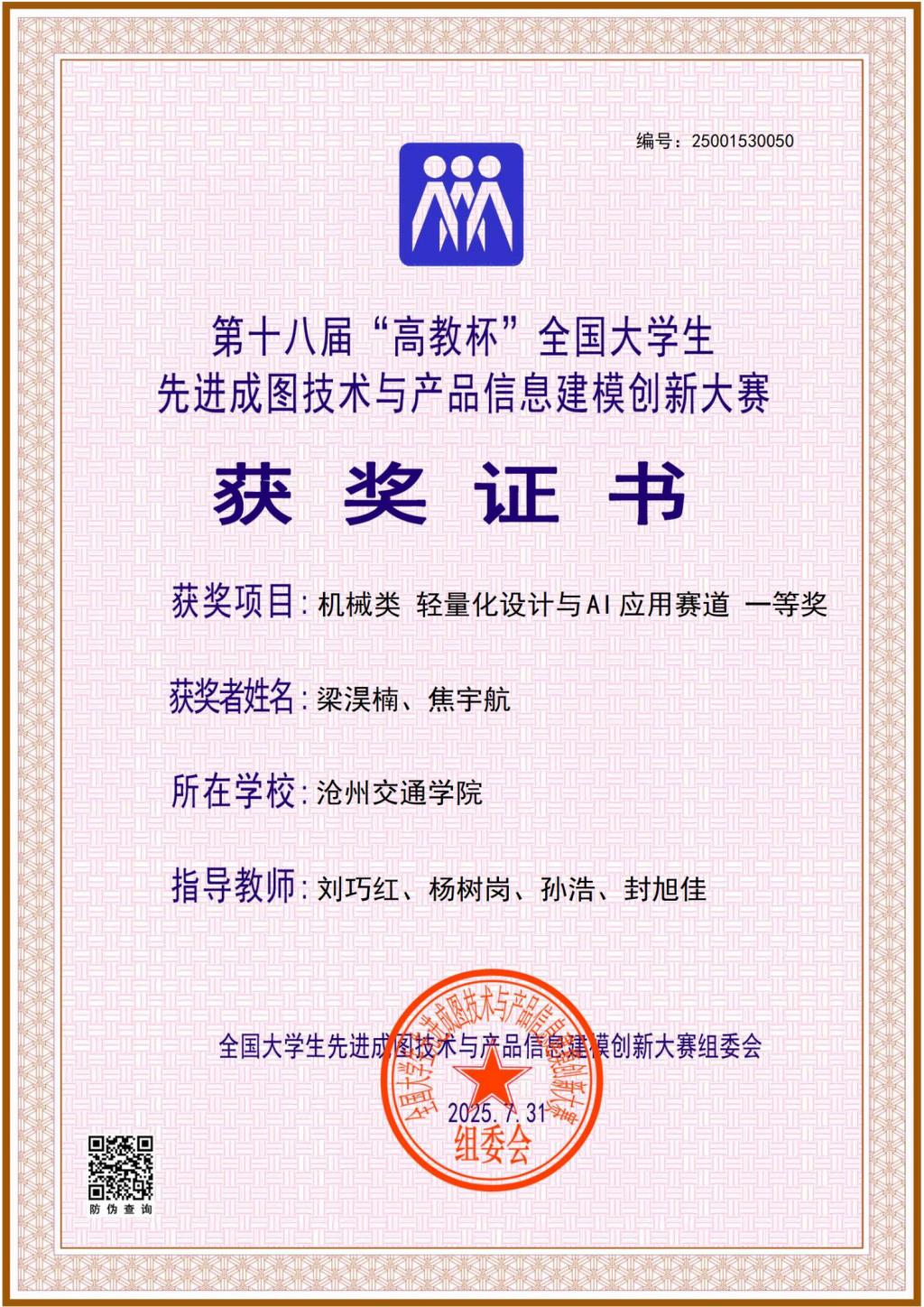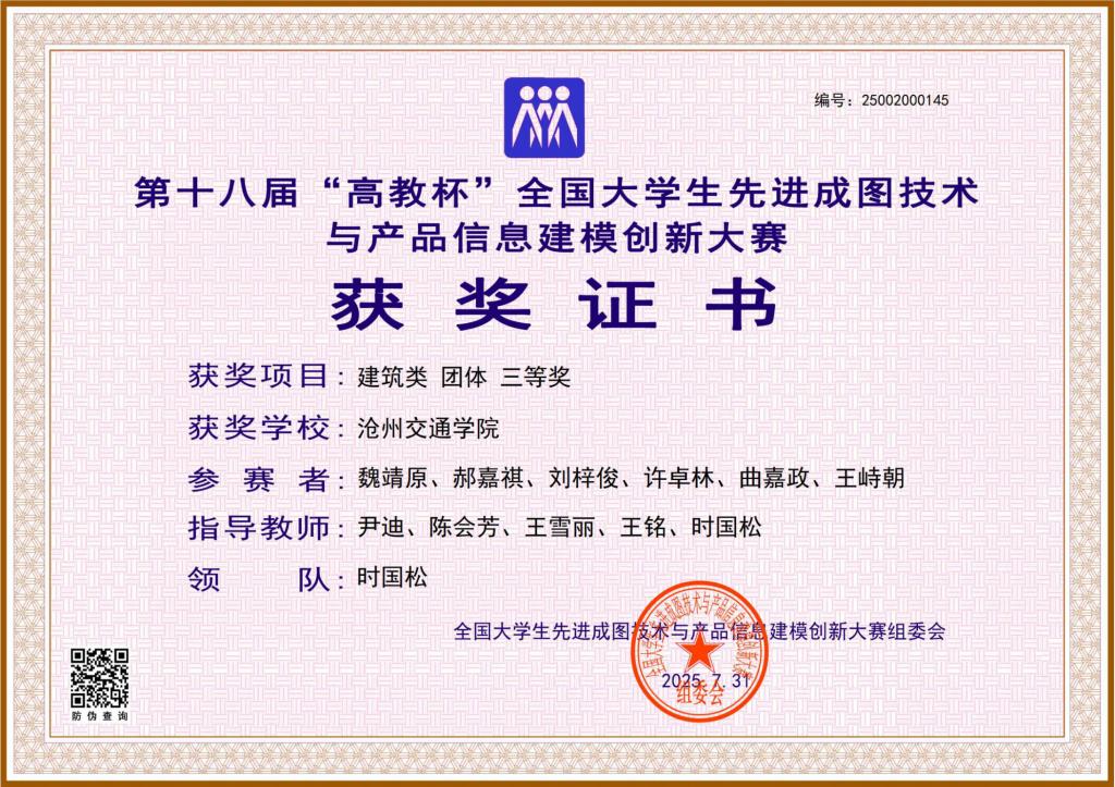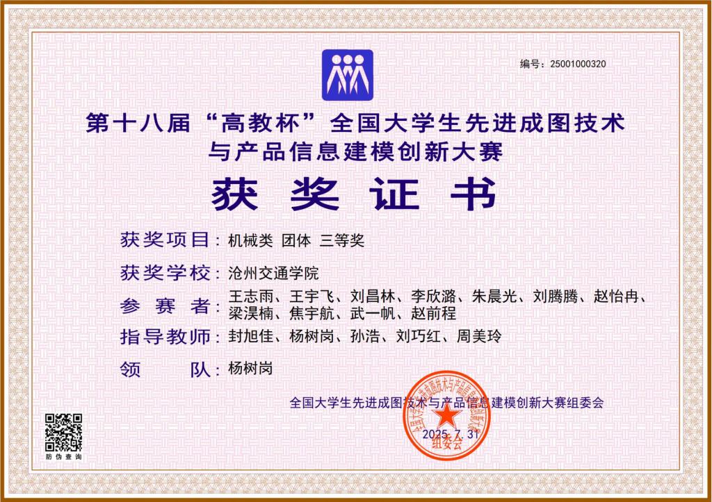 近日,第十八届“高教杯”全国大学生先进成图技术与产品信息建模创新大赛决赛在太原圆满落幕。米乐官网学子在此次比赛中表现优异,经过多轮激烈比拼,最终荣获全国建筑类团体三等奖1项、建筑类先进成图技术赛道二等奖2项、建筑类先进成图技术赛道三等奖3项,全国机械类团体三等奖1项、机械类轻量化设计与AI应用赛道一等奖1项、机械类先进成图技术赛道三等奖1项。