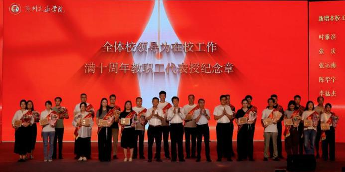 全体校领导为新增的在校工作满十年教职工代表授予纪念章,以此表达学校对老师们诚挚的感谢与崇高的敬意。这不仅是一次庄重的表彰,更是对他们十余年来默默耕耘和无私奉献的深切认可。历经十余载春秋,他们将智慧与汗水熔铸于沧交发展的每一个足迹。光阴流转,青丝渐染,他们依然初心不改、矢志不渝,以清晰的目标与坚实的步伐,与学校同频共振、共赴征程。他们是沧交事业稳步向前、迈向辉煌中最坚定、最可信的中流砥柱。