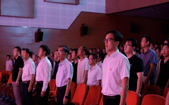 伴随着庄严的国歌响起,全体教师共同起身,齐唱国歌,大会就此拉开帷幕。