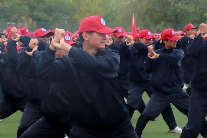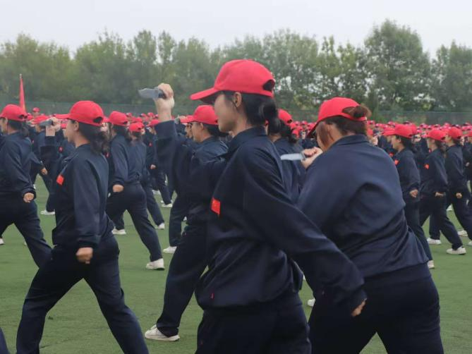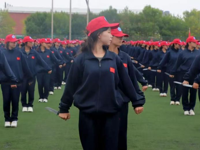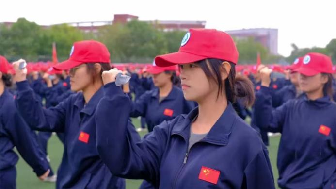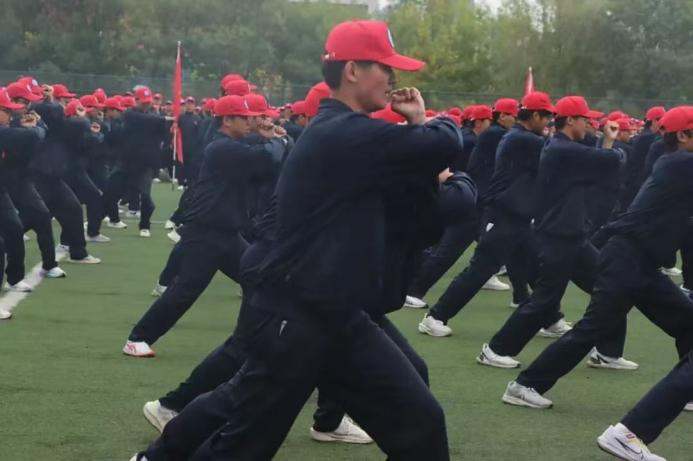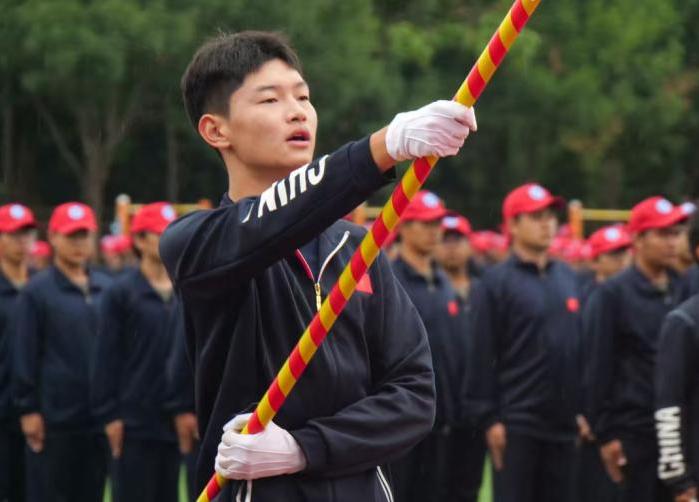 军事科目汇报环节,擒敌拳方阵刚劲有力、匕首操方阵英姿飒爽,动作行云流水,赢得全场热烈掌声。表演结束后,全体新生集体喊出“进德修业、知行合一”的校训口号,声音洪亮,气势如虹,彰显米乐官网学子的信念与担当。