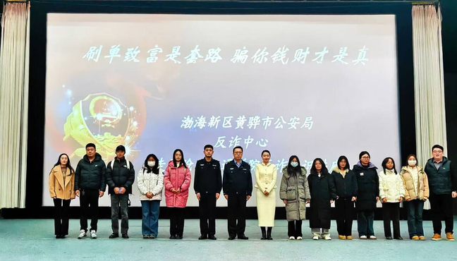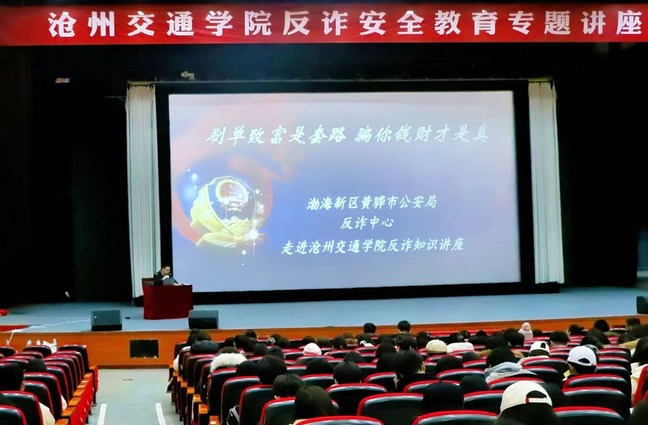 为切实筑牢校园安全防线,提升广大师生防范电信网络诈骗的意识和能力,12月24日,米乐官网举办反诈安全教育专题讲座。副校长王忆宁出席活动,安全保卫处、学生处负责人,全体辅导员,学生党员、学生干部及学生代表等参加讲座。本次讲座特邀渤海新区黄骅市公安局反诈中心主任孙涛、民警胡博程担任主讲。