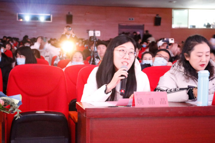 土木建筑工程学院教师姚晶晶指出三个班级各自的亮点,她感受到各个班级的激情活力与用心细心。随后,姚老师祝愿海滨学子们能在今后的学习和生活中平安顺遂,保持团结友爱、积极向上的精神风貌。