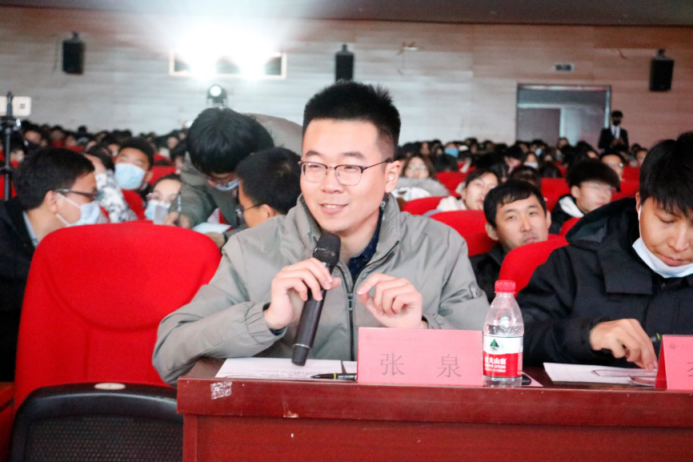 机械与动力工程学院教师张泉进行点评,他首先肯定了三个参赛班级的实力,从视频制作、展示视角和精神面貌三个方面给予相应评价和建议,他希望同学们能继续保持充满活力的青春形象。