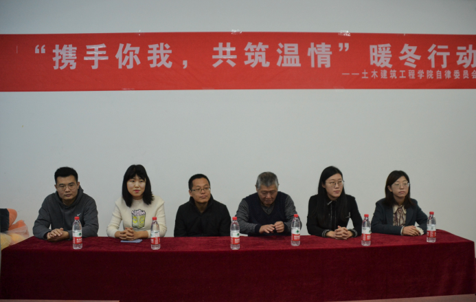 进一步贯彻落实家庭经济困难学生资助政策,土木建筑工程学院于12月2日新实验楼421开展以“携手你我,共筑温情”为主题的暖冬行动,院长陈凡丁、副院长时国松、团委书记姚晶晶、2018级辅导员郑伟、2019级辅导员卢瑶及2020级辅导员刘海彬出席本次活动