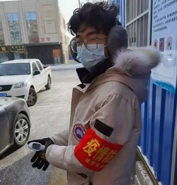 电子与电气工程学院自动化2001班张家境同学作为志愿者,排查外来人员、登记人员出入情况,并进行体温测量,用行动为自己的家乡加油打气。