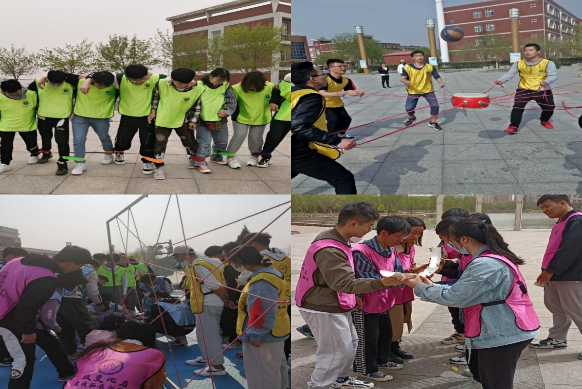 活动负责人首先就活动内容以及流程进行了简单介绍,随后成员们一番热身准备,并按照拓展项目要求分成若干小组,开展比赛。在“十人九足”“鼓动人心”“穿越电网”“珠行万里”等一系列活动中,各组成员你追我赶的同时充分发扬了团队协作精神,在游戏中获得了成长。