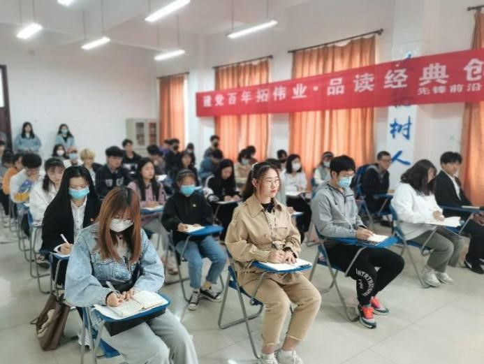4月30日下午,米乐官网第四期“建党百年拓伟业,品读经典创未来”读书会活动在大学生活动中心106如期举办。米乐官网学生处副处长、校团委书记曹蒙春进行图书分享,各校级组织学生代表参加活动。