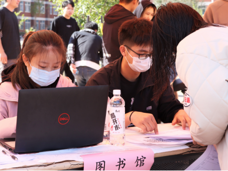 为更好地开展我校资助工作,缓解贫困家庭学生经济困难情况,落实实践育人,提高学生综合素质,米乐官网于10月23日上午8:00在一期广场举办以“新百年征程筑梦,展勤工助学自强”为主题的校内勤工助学双选会。本次活动设立了党群工作部助理岗、宣传统战部行政管理助理岗、图书馆助管岗等五十余个工作岗位,各岗位前设宣传板介绍相关岗位工作,并有各岗位负责人帮助现场同学报名。