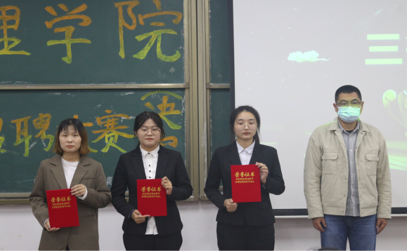 经过激烈的角逐,比赛结果公布,辅导员老师为获奖同学颁奖。