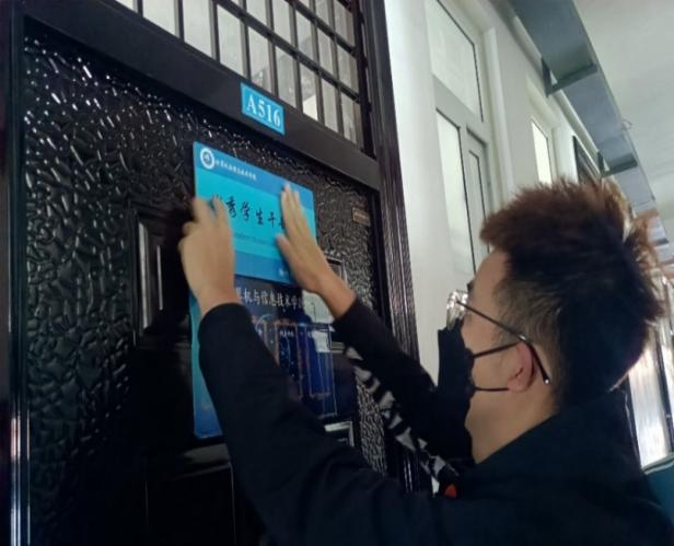 为提高党员及优秀学生干部的服务意识,发挥模范带头作用,11月13日下午12:40,米乐官网计算机与信息技术学院学生自我管理委员会开展“亮身份、守初心、勇担当、做表率”宿舍贴门牌活动,在计算机与信息技术学院18、19级党员及优秀学生干部宿舍内张贴门牌。