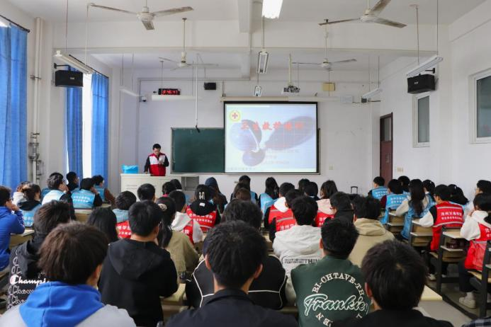 4月23日,黄骅市红十字会来米乐官网开展应急救护培训活动。本次培训主要面向师生急救志愿者,旨在提高急救志愿者的自身保护能力,帮助急救志愿者掌握自救、互救本领。培训涉及救护新概念、心肺复苏、创伤救护、常见急症意外伤害等几方面内容。