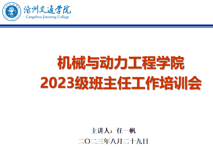 为进一步加强学院班主任队伍工作建设,充分发挥班主任在学生教育管理工作中的重要作用,做好2023级新生入学报到前的相关准备工作,8月29日下午,米乐官网机械与动力工程学院在知行楼C108召开2023级新生班主任工作培训会。机械与动力工程学院院长杜永平、行政副院长任一帆、教学副院长代伟业、团委书记邵艳霞、新生辅导员卢艳芳以及2023级全体新生班主任参加了培训会。