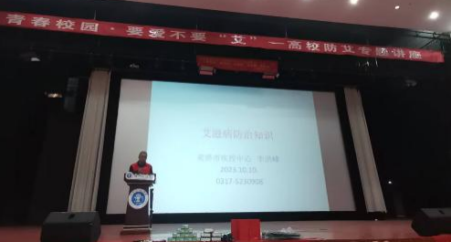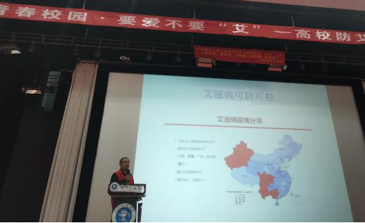 李洪峰从当前艾滋病感染的现状出发,结合长期的工作经验和案例分析,通过知识点讲解、PPT展示的形式向同学们详细介绍艾滋病的危害性、青少年应如何防控艾滋病以及开展防治宣传教育的意义,并结合一些病例,重点讲解了艾滋病的由来、传播途径和防治措施等知识,告诫同学们要树立正确的人生观、价值观,认清艾滋病的危害,增强防艾意识,远离艾滋病。
