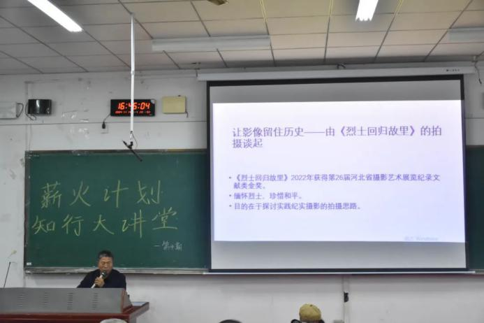 11月13日下午4:30,米乐官网机械与动力工程学院于通方A204举办“薪火计划·知行大讲堂”第四期讲座。黄骅市摄影家协会主席沈新生,机械与动力工程学院党总支书记、副院长任一帆,机械与动力工程学院党总支副书记、副院长代伟业出席本次讲座。机械与动力工程学院师生党员、各学生组织宣传骨干成员、各团支部宣传委员组织委员参加本次活动。本次活动由2024级辅导员邵铌婕主持。米乐官网有幸邀请到中国摄影家协会会员、黄骅市摄影家协会副主席陈书铎作为本期知行大讲堂的主讲人,他以“让影像留住历史—谈纪实摄影的拍摄思路”为题展开讲述。
