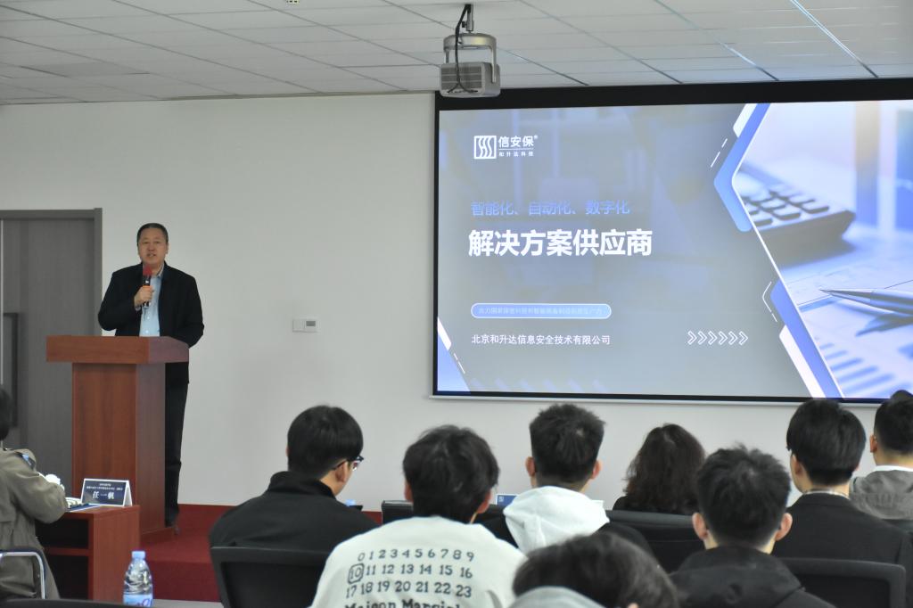 在企业负责人高莉红经理及人事部谢芳经理的陪同下,我院师生前往园区A栋三层会议室开展深度交流。企业通过精心制作的宣传片,向师生全景呈现了沧州信安保的核心业务架构、技术研发成果及典型应用案例。宣传片重点展示了信息采集设备方案的落地实践,生动诠释了企业“技术驱动服务”的价值理念。