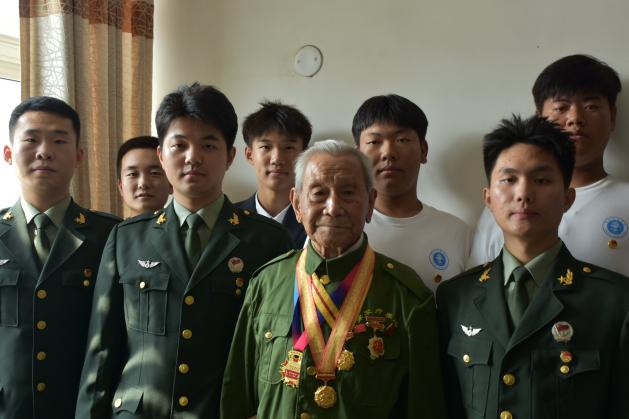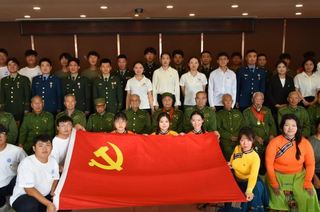 米乐官网艺术学院团委书记兼第二党支部书记刘凤梅,支部委员殷亚蕊、吕娅妮,教师党员代表王蕾、郑开元、田晓银,以及来自退役大学生士兵、军训教官、艺术团和志愿团等群体的50余名师生共同参与了此次活动,与老战士们共迎国庆。