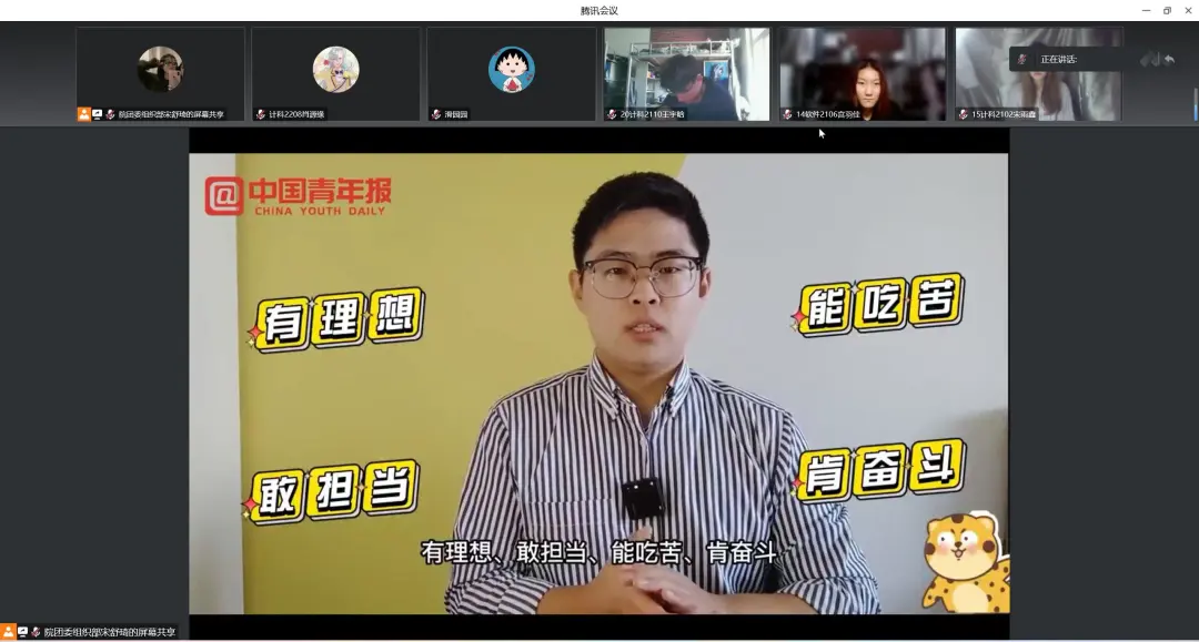 青马骨干成员观看了青年马克思主义工程宣传视频。视频中,习近平总书记在党的二十大报告中指出:广大青年要坚定不移听党话、跟党走,怀抱梦想又脚踏实地,敢想敢为又善作善成,有理想,能吃苦,敢担当,肯奋斗,争做有志新青年,让青春在全面建设社会主义现代化国家的火热实践中绽放绚丽之花。
