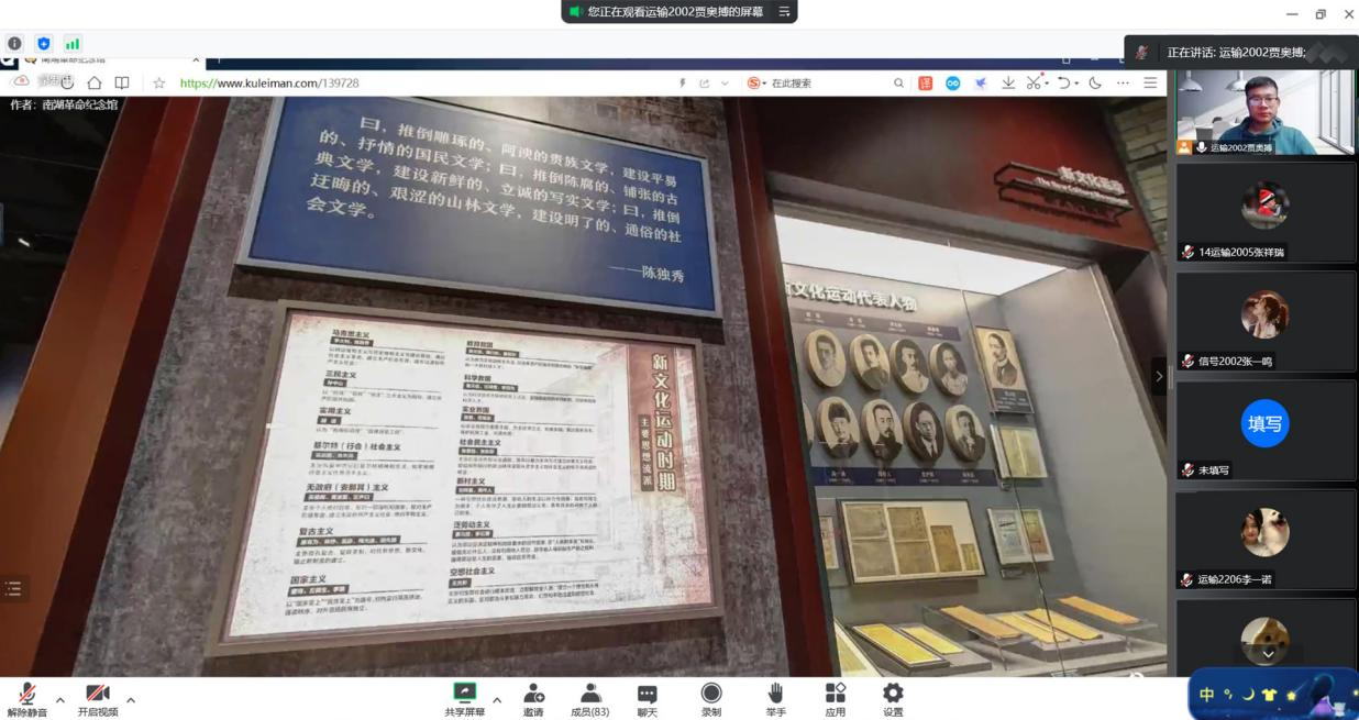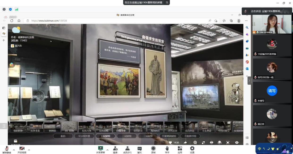 米乐官网轨道交通学院党总支于11月26日下午4时开展南湖革命纪念馆网上参观展览活动,全体师生党员参会,由学生党员组成的宣讲团带领大家线上参观南湖革命纪念馆,在参观的同时提供详细的内容讲解。
