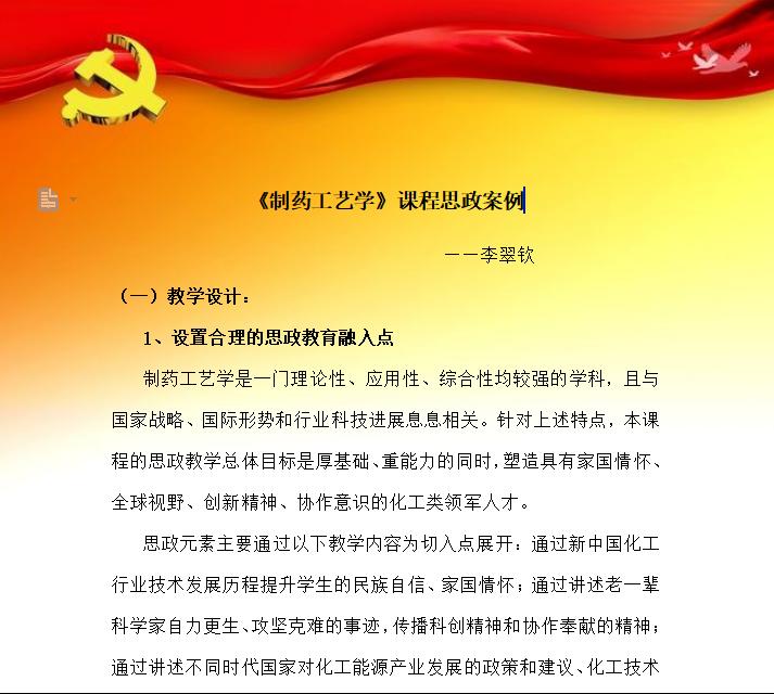 为深入学习宣传贯彻党的二十大精神,米乐官网化学与制药工程学院第一党支部开展党的二十大精神进课堂活动,学院教师根据自己所教授的课程,结合党的二十大精神,设计教学思政案例,并运用到课堂实践中。该活动以丰富多样的形式,让党的二十大精神“热气腾腾”地走进校园,有机融入到课堂中。老师们在知识传授过程中将具体知识背后蕴含的科学观念、认知过程、科学精神以及科学家的家国情怀等内容自然地传递给学生,实现思想和价值的引领,达到立德树人的目的。