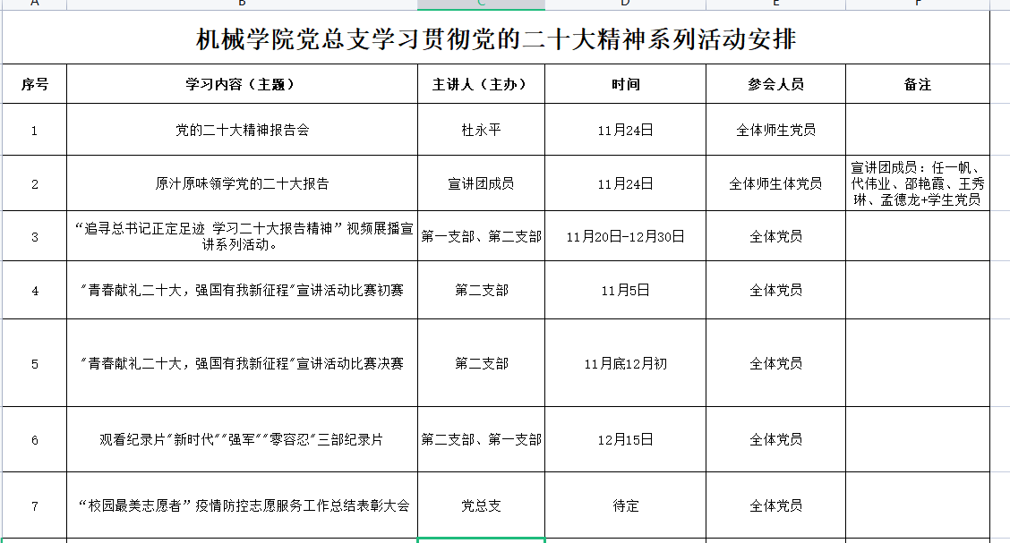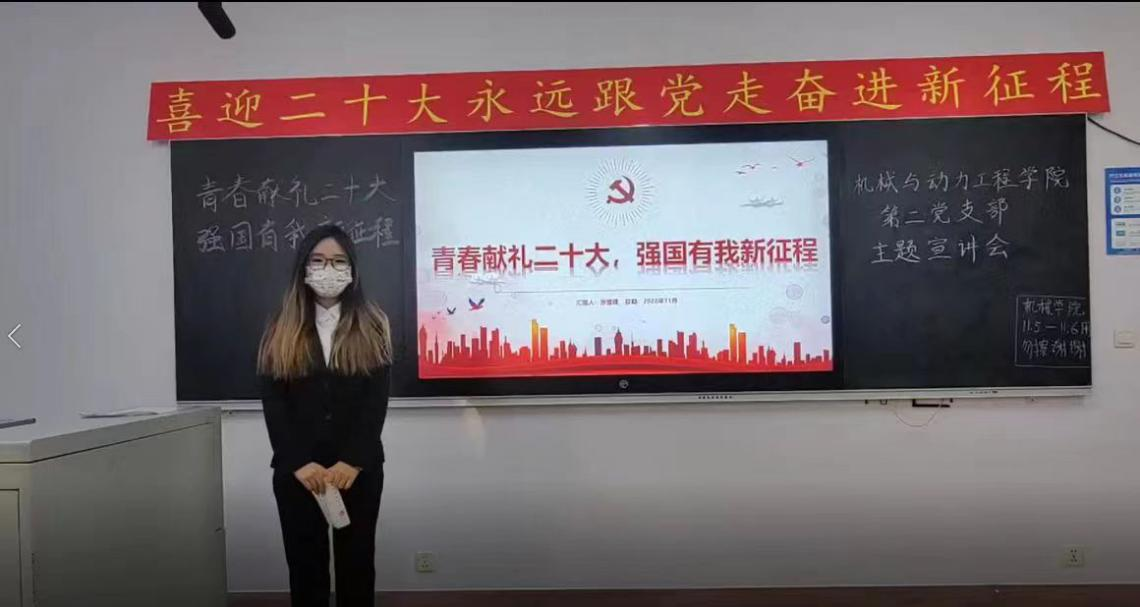 机械与动力工程学院成立党的二十大精神宣讲团,宣讲团由机械与动力工程学院党总支委员会委员及学生党员组成,主要围绕党的二十大报告及新修订的党章展开宣讲活动,面向全院师生进行宣讲。