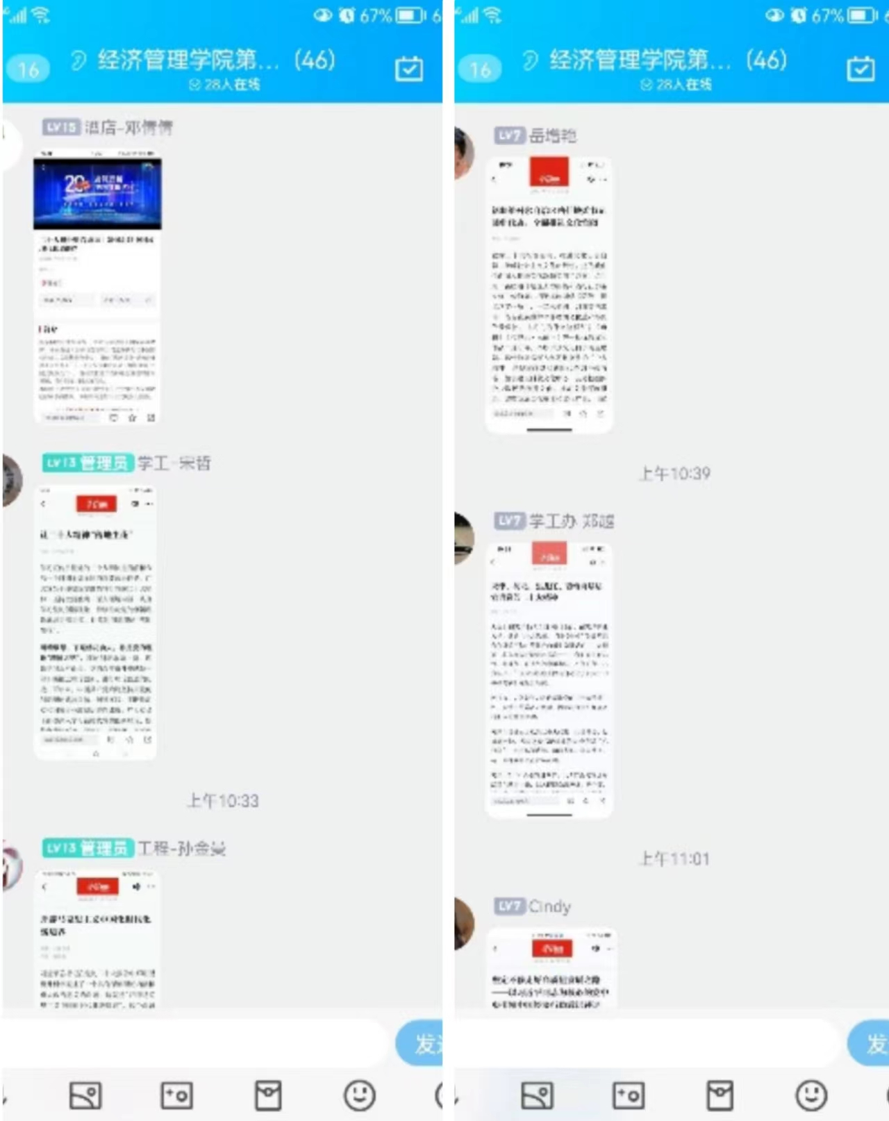 同时,经济管理学院第一党支部全体教师党员以个人自学方式,通过“学习强国”学习平台学习了“让党的二十大精神‘落地生花’”“开辟马克思主义中国化时代化新境界”“从六个要点深刻领悟党的二十大报告的精髓要义”等文章,并在学习交流群中进行打卡,相互学习讨论,深刻领会党的二十大精神。